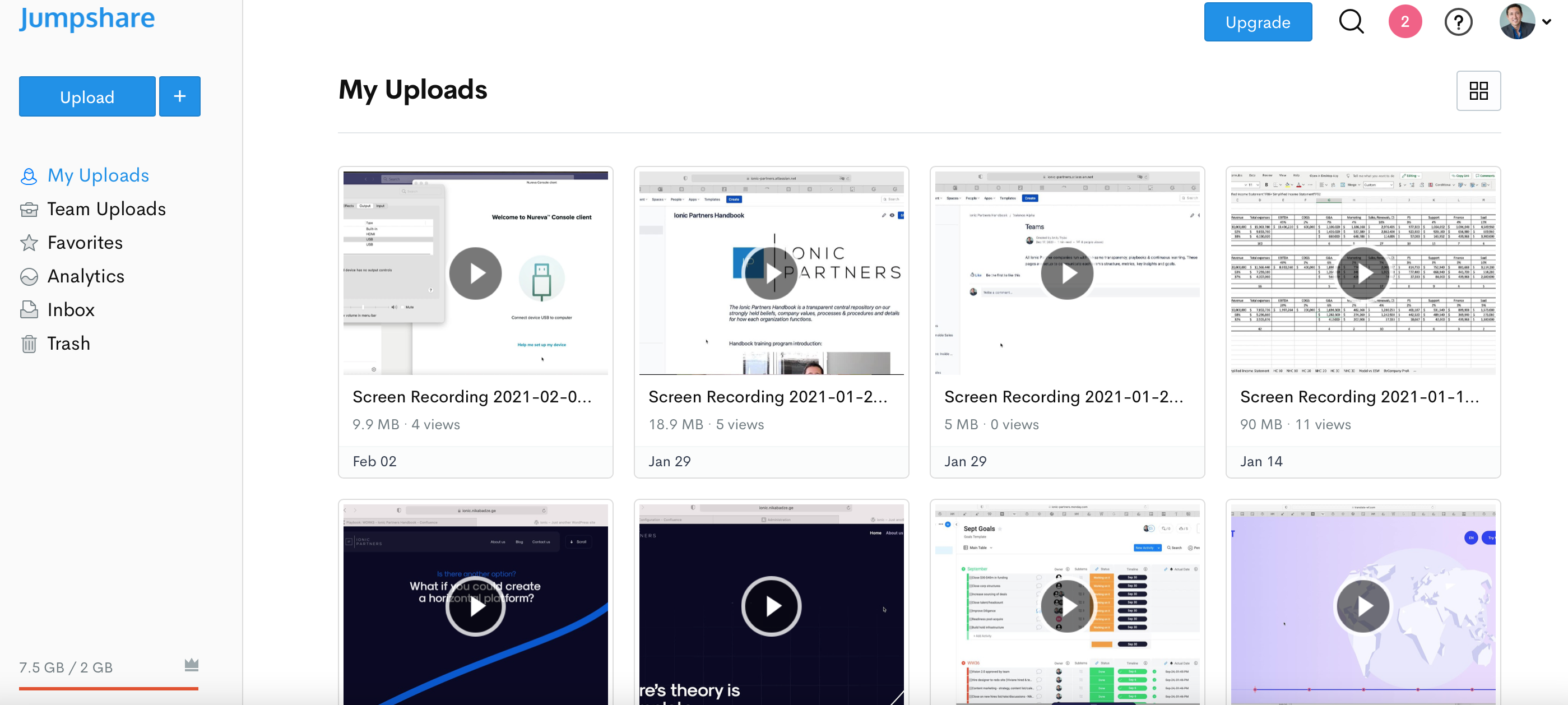 Some recording apps (like Jumpshare and Loom) are native SaaS apps – and automatically display the video in their cloud interface. These work great also. You end up creating a personal YouTube-like channel of your videos and can measure views, length of viewer watch time, etc. And if you no longer want the video available – you can simply unshare it.