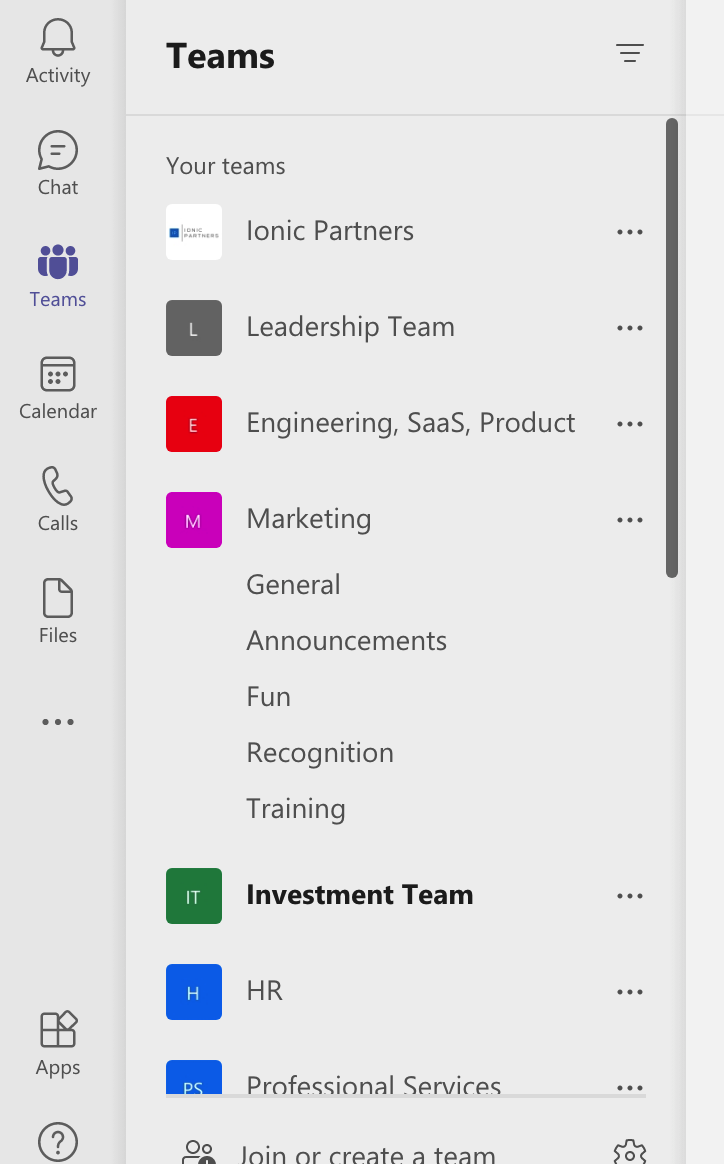 - Channel posts - posts within channels are a bit more persistent and should be used for most team communications. Team members comment under posts and provide feedback. We structure our channels within the companies and the divisions into the following: